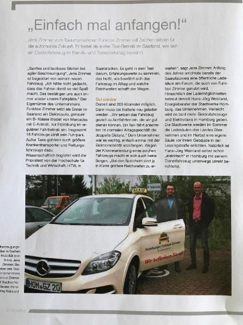 Auch die Stadtwerke Homburg interessieren sich für das erste E-Taxi im Saarland wie Sie